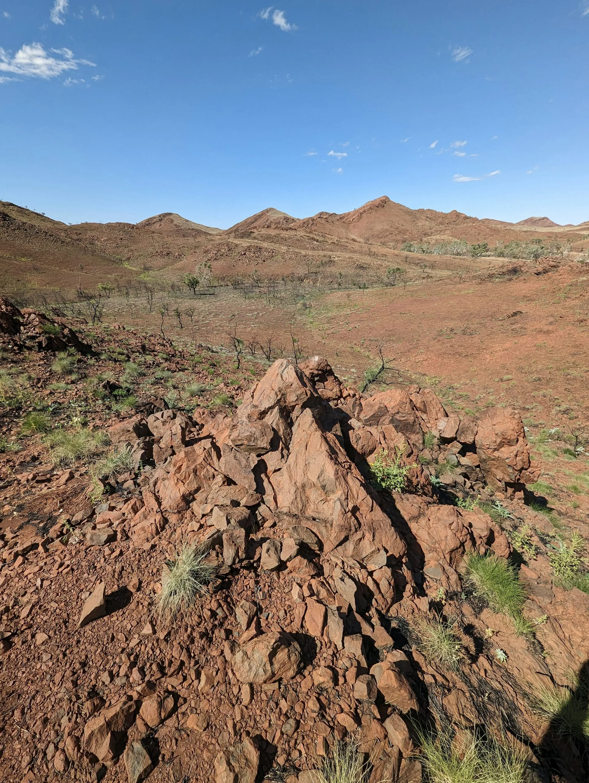 After consulting the GSWA maps and aerial photography, we located an area in the centre of the Pilbara along a dusty track to begin our search. We parked the offroad vehicles and headed our separate ways across the outcrops, more in hope than expectation, agreeing to meet an hour later to discuss what we’d found and grab a bite to eat.